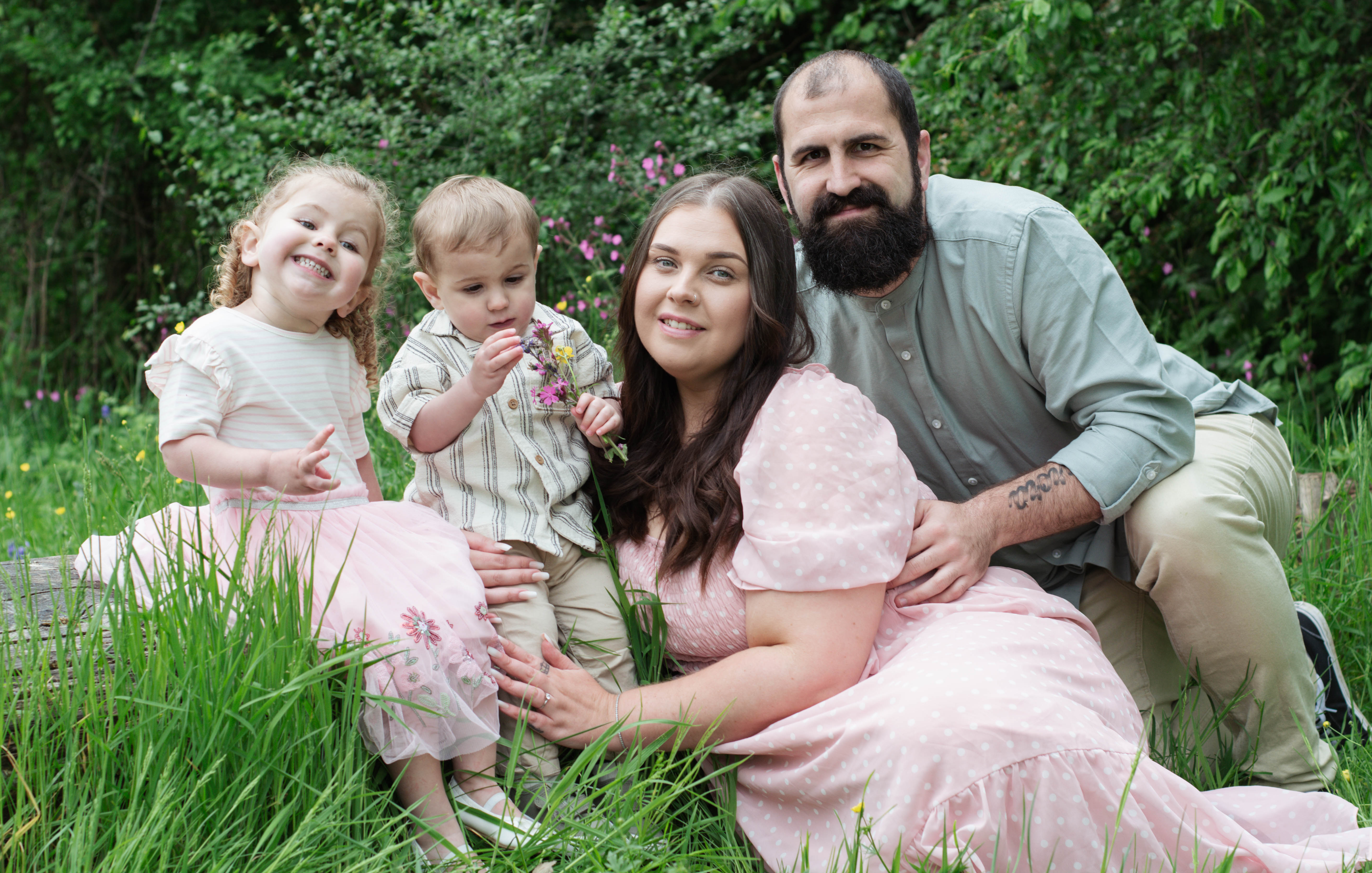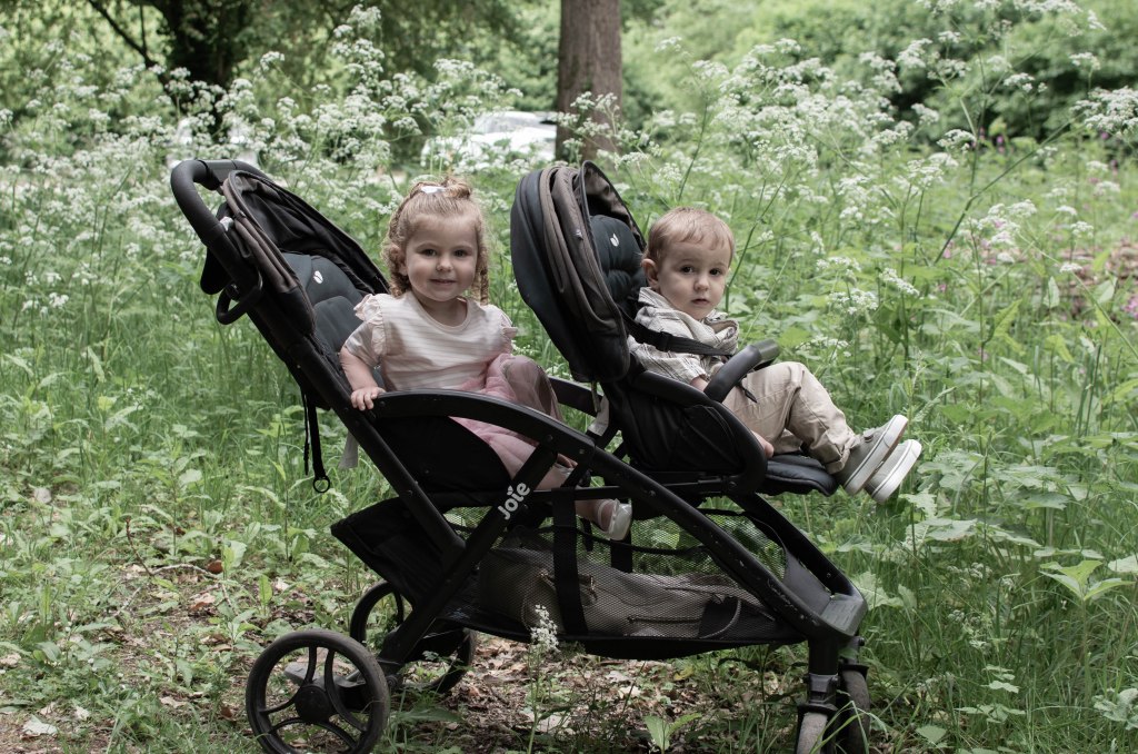 We kept the little ones in the buggy as we got stuck into the shoot , grabbing cute pics under the trees on a pretty wooded path .