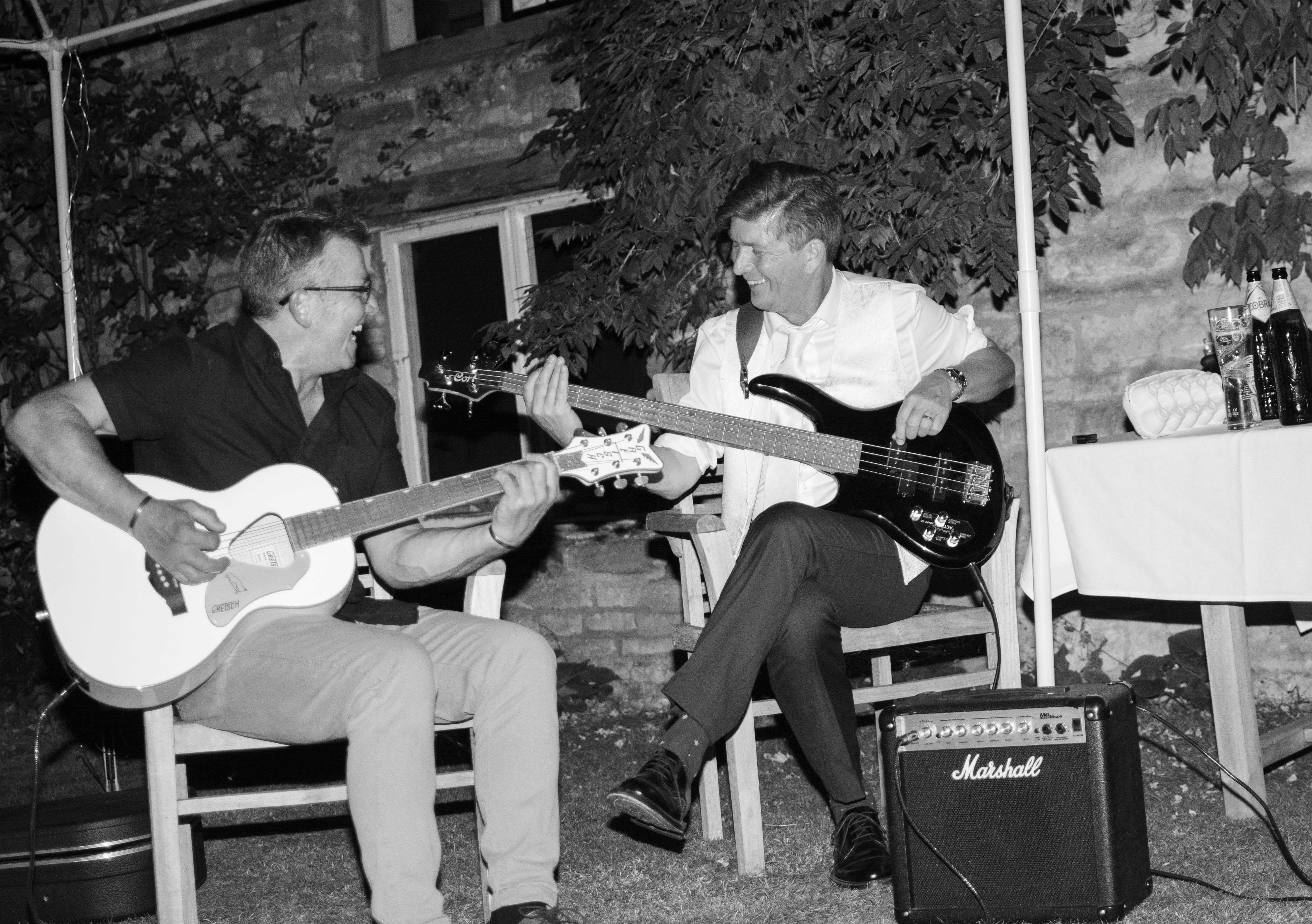 As the evening continued, the couple had prepared games for their guests, which were so much fun to watch. Then, as the sun began to set, the groom and his old bandmates from their younger years played a few acoustic songs on guitar. Everyone joined in, singing along to classics — including Wonderwall by Oasis.